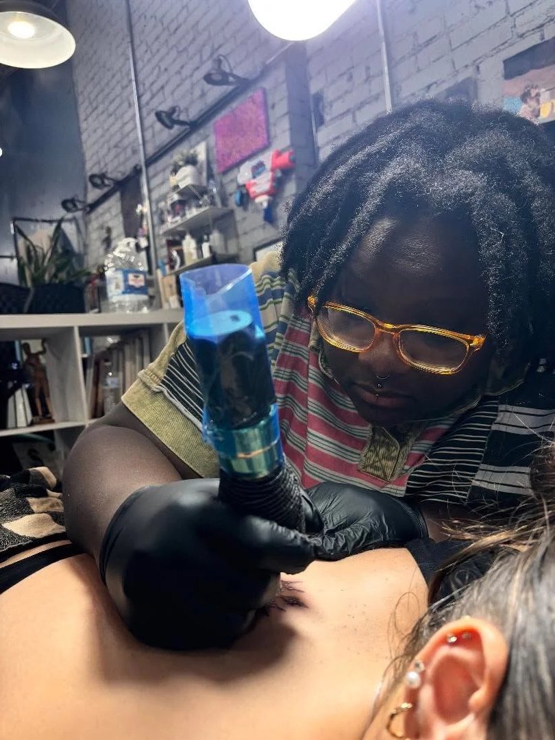 Above all, River prioritizes creating a safe, respectful, and inclusive space for all bodies to get tattooed. Every client is met with patience, clear communication, and care throughout the entire process—from consultation to aftercare. Whether someone is new to tattooing or deeply tattooed, River approaches each piece collaboratively, making sure clients feel comfortable, heard, and confident in their experience.